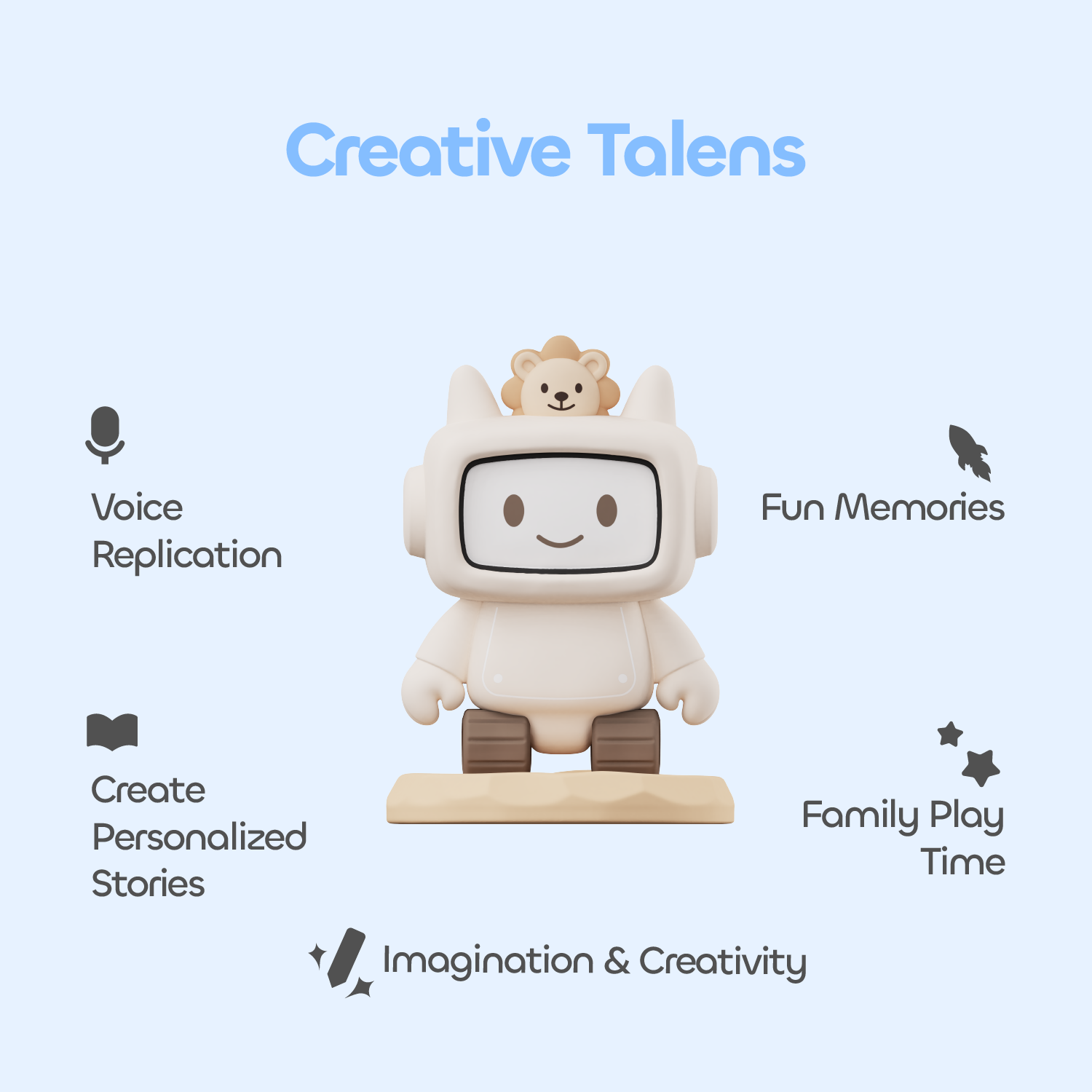 - The Creative Talens focus on personalization and creativity. These blank figurines can be customized using the Talenpal app. Parents and children can record their own stories or use AI tools to generate unique stories tailored to the child's interests. This makes the audio content truly their own.